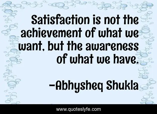 "Abhysheq Shukla Quotes." Quoteslyfe.com, 2025. Fri. 05 Dec. 2025. <https://www.quoteslyfe.com/quote/Satisfaction-is-not-the-achievement-of-what-126955>.