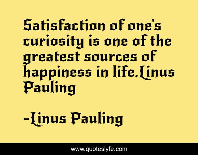 This page presents the quote "Satisfaction of one's curiosity is one of the greatest sources of happiness in life.Linus Pauling". Author of this quote is Linus Pauling. This quote is about linus-pauling, curiosity, the-artist-s-way,.