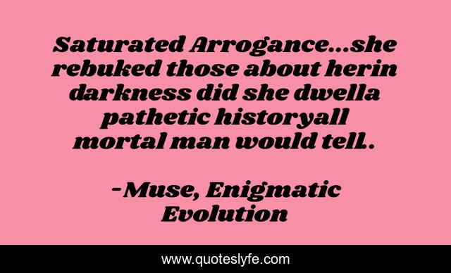 "Muse, Enigmatic Evolution Quotes." Quoteslyfe.com, 2025. Mon. 08 Dec. 2025. <https://www.quoteslyfe.com/quote/Saturated-Arrogance-she-rebuked-those-about-herin-150220>.