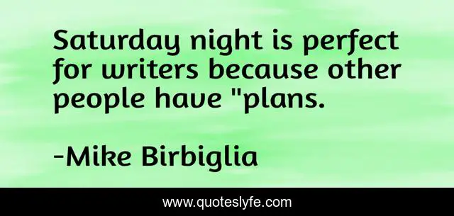 This page presents the quote "Saturday night is perfect for writers because other people have "plans.". Author of this quote is Mike Birbiglia. This quote is about night, plans, writers, saturday, people,.