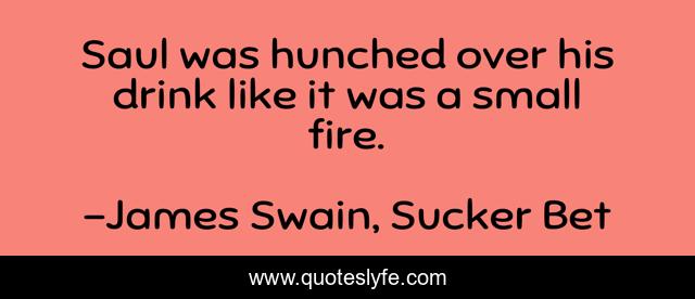 This page presents the quote "Saul was hunched over his drink like it was a small fire.". Author of this quote is James Swain, Sucker Bet. .