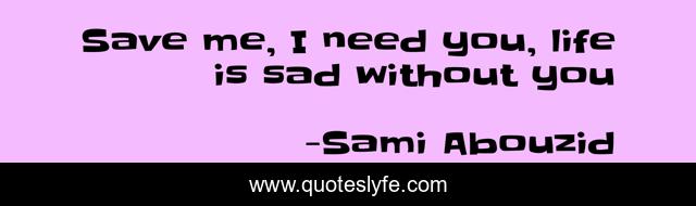 This page presents the quote "Save me, I need you, life is sad without you". Author of this quote is Sami Abouzid. This quote is about love, affection,.