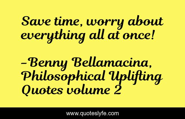 "Benny Bellamacina, Philosophical Uplifting Quotes volume 2 Quotes." Quoteslyfe.com, 2025. Fri. 05 Dec. 2025. <https://www.quoteslyfe.com/quote/Save-time-worry-about-everything-all-at-56169>.