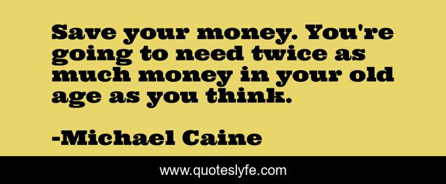 This page presents the quote "Save your money. You're going to need twice as much money in your old age as you think.". Author of this quote is Michael Caine. This quote is about money, old age, think,.