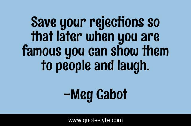 "Meg Cabot Quotes." Quoteslyfe.com, 2025. Fri. 05 Dec. 2025. <https://www.quoteslyfe.com/quote/Save-your-rejections-so-that-later-when-291491>.