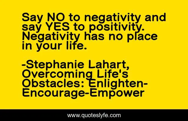 "Stephanie Lahart, Overcoming Life's Obstacles: Enlighten-Encourage-Empower Quotes." Quoteslyfe.com, 2025. Fri. 05 Dec. 2025. <https://www.quoteslyfe.com/quote/Say-NO-to-negativity-and-say-YES-95602>.