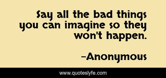This page presents the quote "Say all the bad things you can imagine so they won't happen.". Author of this quote is Anonymous. .