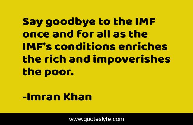This page presents the quote "Say goodbye to the IMF once and for all as the IMF's conditions enriches the rich and impoverishes the poor.". Author of this quote is Imran Khan. This quote is about poor, rich,.