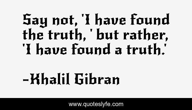 "Khalil Gibran Quotes." Quoteslyfe.com, 2025. Sat. 06 Dec. 2025. <https://www.quoteslyfe.com/quote/Say-not-I-have-found-the-truth-309916>.