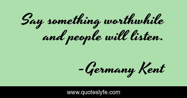 "Germany Kent Quotes." Quoteslyfe.com, 2025. Mon. 08 Dec. 2025. <https://www.quoteslyfe.com/quote/Say-something-worthwhile-and-people-will-listen-109624>.