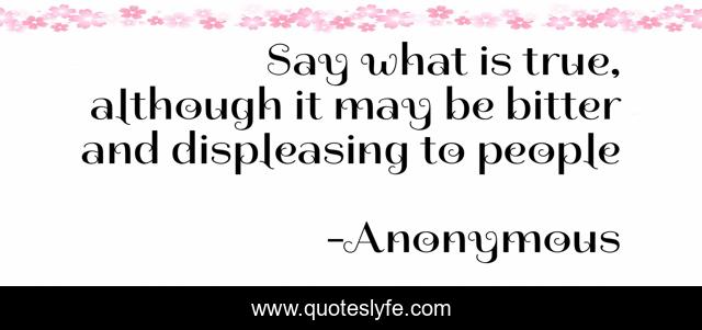 This page presents the quote "Say what is true, although it may be bitter and displeasing to people". Author of this quote is Anonymous. This quote is about reality-of-life, truth, positive, motivational, confidence, optimistic, inspirational, enthusiasm,.