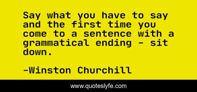 This page presents the quote "Say what you have to say and the first time you come to a sentence with a grammatical ending - sit down.". Author of this quote is Winston Churchill. This quote is about speakers, speeches,.