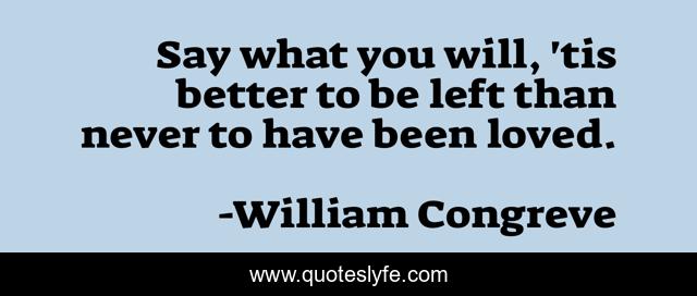 This page presents the quote "Say what you will, 'tis better to be left than never to have been loved.". Author of this quote is William Congreve. This quote is about better, loved,.
