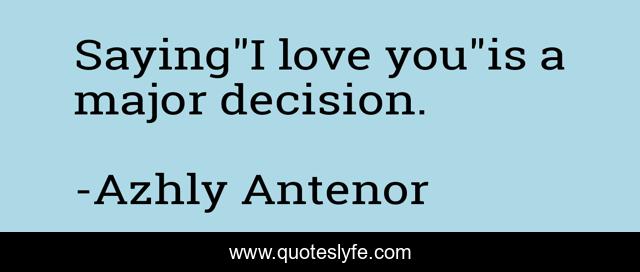 This page presents the quote "Saying"I love you"is a major decision.". Author of this quote is Azhly Antenor. This quote is about decisions, love, affection,.