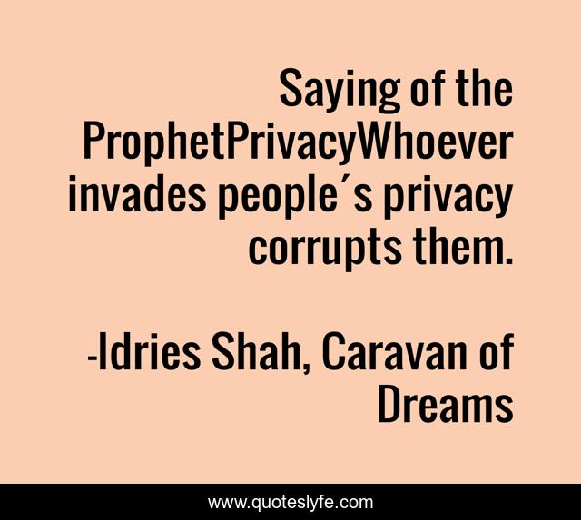 "Idries Shah, Caravan of Dreams Quotes." Quoteslyfe.com, 2025. Fri. 05 Dec. 2025. <https://www.quoteslyfe.com/quote/Saying-of-the-ProphetPrivacyWhoever-invades-people-s-187613>.