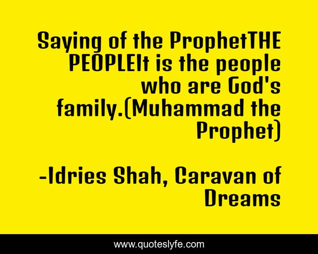 This page presents the quote "Saying of the ProphetTHE PEOPLEIt is the people who are God's family.(Muhammad the Prophet)". Author of this quote is Idries Shah, Caravan of Dreams. This quote is about hadith, religion, sufism, muhammad, sufis, islam,.
