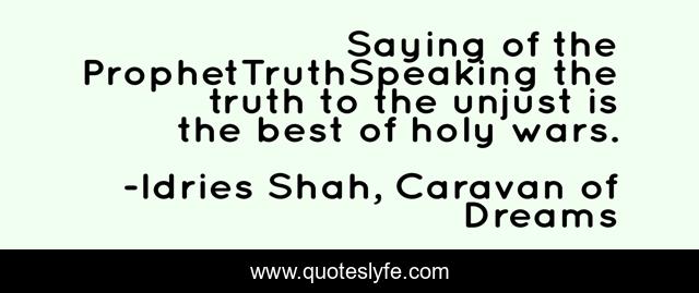 This page presents the quote "Saying of the ProphetTruthSpeaking the truth to the unjust is the best of holy wars.". Author of this quote is Idries Shah, Caravan of Dreams. This quote is about hadith, religion, sufism, muhammad, sufis, islam,.