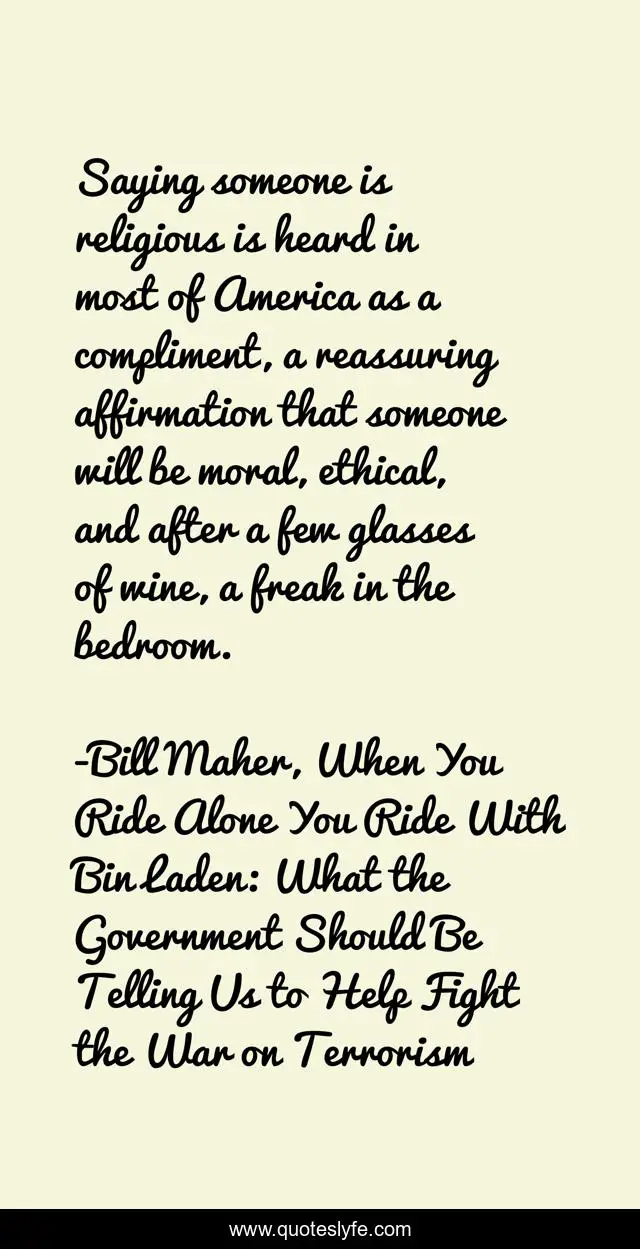 "Bill Maher, When You Ride Alone You Ride With Bin Laden: What the Government Should Be Telling Us to Help Fight the War on Terrorism Quotes." Quoteslyfe.com, 2025. Mon. 08 Dec. 2025. <https://www.quoteslyfe.com/quote/Saying-someone-is-religious-is-heard-in-29790>.
