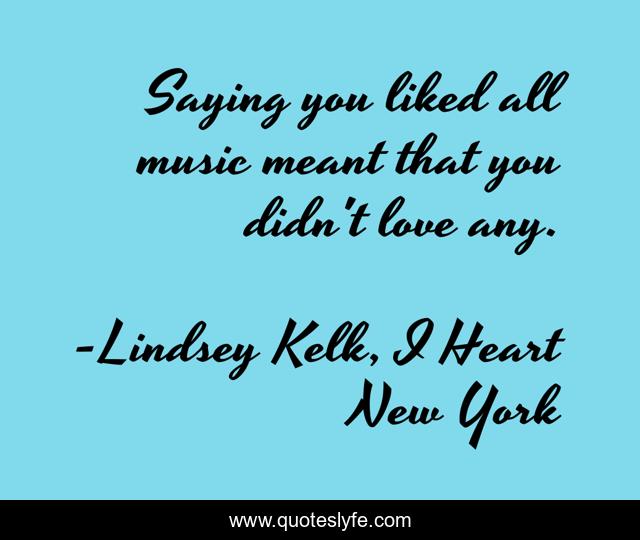 "Lindsey Kelk, I Heart New York Quotes." Quoteslyfe.com, 2025. Sat. 06 Dec. 2025. <https://www.quoteslyfe.com/quote/Saying-you-liked-all-music-meant-that-78901>.
