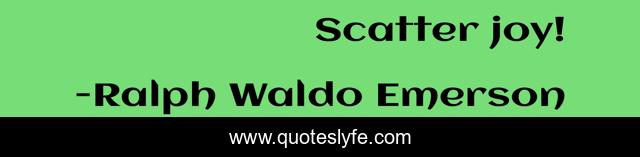 This page presents the quote "Scatter joy!". Author of this quote is Ralph Waldo Emerson. .