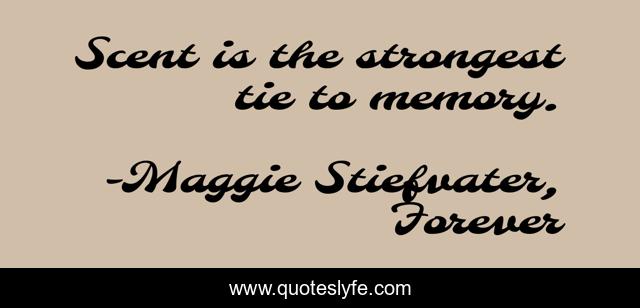 This page presents the quote "Scent is the strongest tie to memory.". Author of this quote is Maggie Stiefvater, Forever. This quote is about romance, forever, love, affection,.