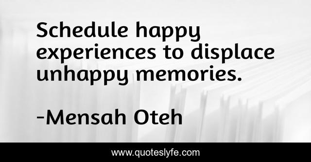 "Mensah Oteh Quotes." Quoteslyfe.com, 2025. Fri. 05 Dec. 2025. <https://www.quoteslyfe.com/quote/Schedule-happy-experiences-to-displace-unhappy-memories-49277>.
