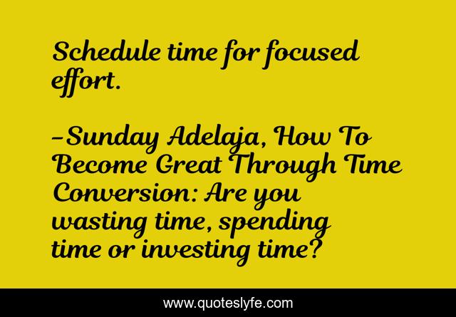 "Sunday Adelaja, How To Become Great Through Time Conversion: Are you wasting time, spending time or investing time? Quotes." Quoteslyfe.com, 2025. Fri. 05 Dec. 2025. <https://www.quoteslyfe.com/quote/Schedule-time-for-focused-effort-39378>.