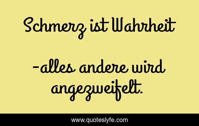 "alles andere wird angezweifelt. Quotes." Quoteslyfe.com, 2025. Sat. 06 Dec. 2025. <https://www.quoteslyfe.com/quote/Schmerz-ist-Wahrheit-9958>.