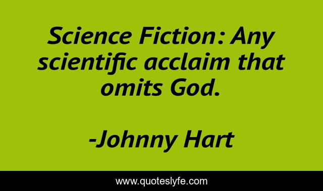 This page presents the quote "Science Fiction: Any scientific acclaim that omits God.". Author of this quote is Johnny Hart. This quote is about science, religion, scifi, science-fiction, god,.