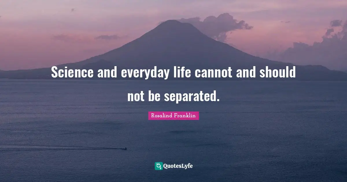 This page presents the quote "Science and everyday life cannot and should not be separated.". Author of this quote is Rosalind Franklin. This quote is about everyday, science, scientist, everyday life,.