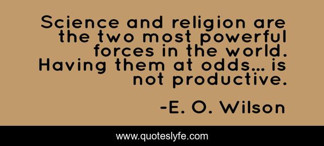 This page presents the quote "Science and religion are the two most powerful forces in the world. Having them at odds... is not productive.". Author of this quote is E. O. Wilson. This quote is about science, powerful, world,.