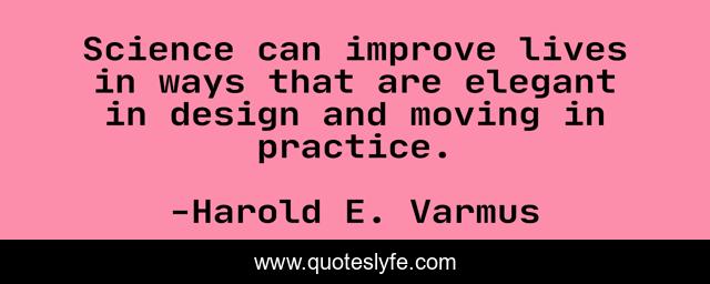 This page presents the quote "Science can improve lives in ways that are elegant in design and moving in practice.". Author of this quote is Harold E. Varmus. This quote is about design, practice, moving,.