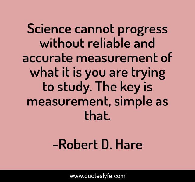 This page presents the quote "Science cannot progress without reliable and accurate measurement of what it is you are trying to study. The key is measurement, simple as that.". Author of this quote is Robert D. Hare. This quote is about simple, progress,.