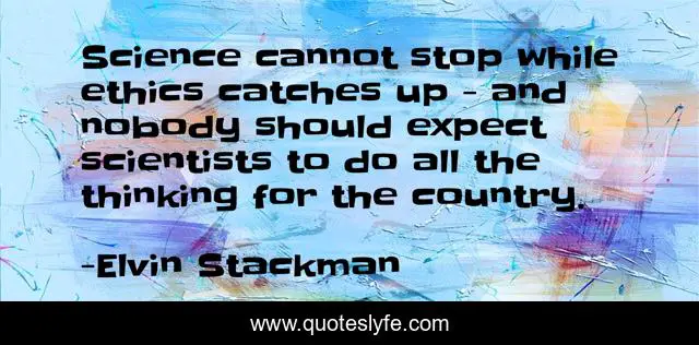 "Elvin Stackman Quotes." Quoteslyfe.com, 2025. Sat. 06 Dec. 2025. <https://www.quoteslyfe.com/quote/Science-cannot-stop-while-ethics-catches-up-275446>.