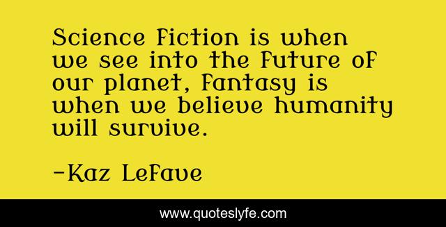 This page presents the quote "Science fiction is when we see into the future of our planet, fantasy is when we believe humanity will survive.". Author of this quote is Kaz Lefave. This quote is about climate-change, fantasy, science-fiction,.