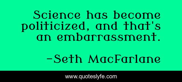 This page presents the quote "Science has become politicized, and that's an embarrassment.". Author of this quote is Seth MacFarlane. This quote is about embarrassment, become,.