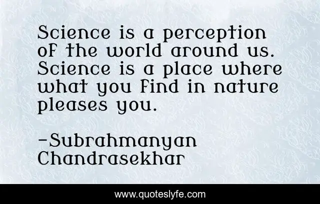 This page presents the quote "Science is a perception of the world around us. Science is a place where what you find in nature pleases you.". Author of this quote is Subrahmanyan Chandrasekhar. This quote is about science, perception, world,.