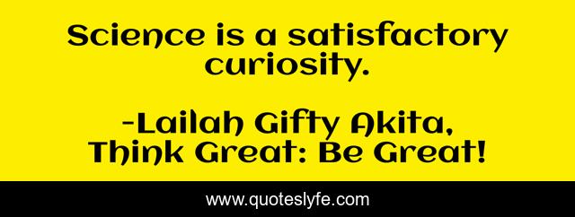 "Lailah Gifty Akita, Think Great: Be Great! Quotes." Quoteslyfe.com, 2025. Fri. 05 Dec. 2025. <https://www.quoteslyfe.com/quote/Science-is-a-satisfactory-curiosity-218284>.