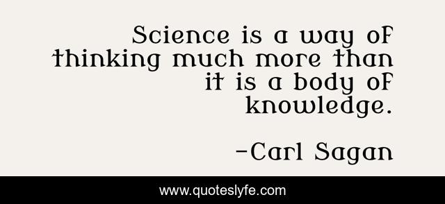 This page presents the quote "Science is a way of thinking much more than it is a body of knowledge.". Author of this quote is Carl Sagan. This quote is about reasons, science, thinking,.