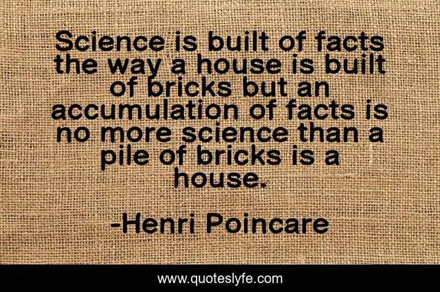 This page presents the quote "Science is built of facts the way a house is built of bricks but an accumulation of facts is no more science than a pile of bricks is a house.". Author of this quote is Henri Poincare. This quote is about science, technology,.