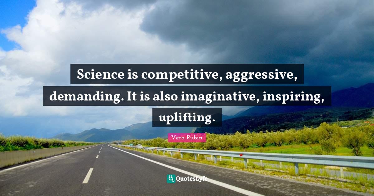 This page presents the quote "Science is competitive, aggressive, demanding. It is also imaginative, inspiring, uplifting.". Author of this quote is Vera Rubin. This quote is about science, imaginative, inspiring, demand, aggressive, uplifting,.