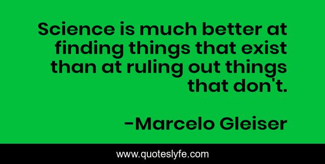 This page presents the quote "Science is much better at finding things that exist than at ruling out things that don't.". Author of this quote is Marcelo Gleiser. This quote is about existence, life, science,.