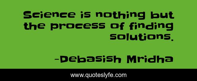 This page presents the quote "Science is nothing but the process of finding solutions.". Author of this quote is Debasish Mridha. This quote is about what-is-science, philosophy, debasish-mridha, debasish-mridha-m-d, quotes, solutions, inspirational, enthusiasm, finding-solutions,.