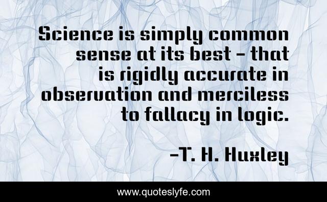 This page presents the quote "Science is simply common sense at its best - that is rigidly accurate in observation and merciless to fallacy in logic.". Author of this quote is T. H. Huxley. .