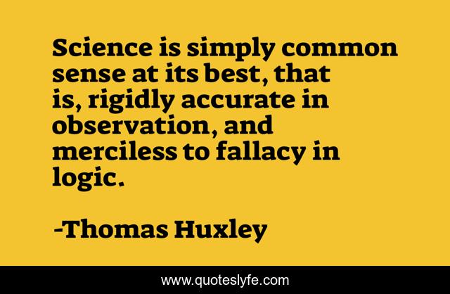 This page presents the quote "Science is simply common sense at its best, that is, rigidly accurate in observation, and merciless to fallacy in logic.". Author of this quote is Thomas Huxley. This quote is about common sense, best, logic,.