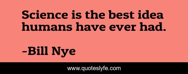 This page presents the quote "Science is the best idea humans have ever had.". Author of this quote is Bill Nye. This quote is about development, progress, humans, science,.