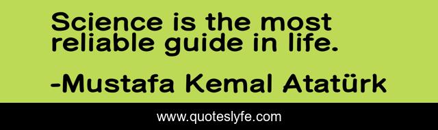 This page presents the quote "Science is the most reliable guide in life.". Author of this quote is Mustafa Kemal Atatürk. This quote is about science, inspirational, enthusiasm,.
