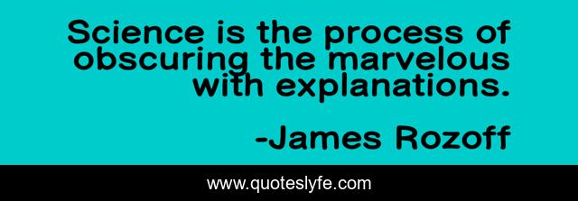 This page presents the quote "Science is the process of obscuring the marvelous with explanations.". Author of this quote is James Rozoff. .
