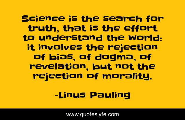 This page presents the quote "Science is the search for truth, that is the effort to understand the world: it involves the rejection of bias, of dogma, of revelation, but not the rejection of morality.". Author of this quote is Linus Pauling. This quote is about world, effort, truth,.