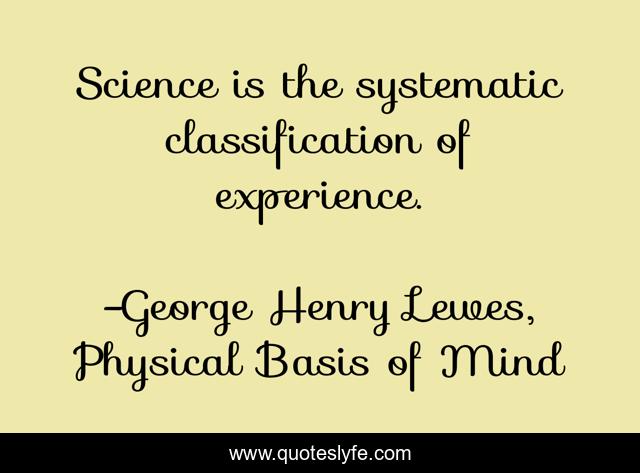 This page presents the quote "Science is the systematic classification of experience.". Author of this quote is George Henry Lewes, Physical Basis of Mind. This quote is about science, classification, experience, naturalist,.